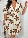 SHEIN Frenchy Vestido de mujer de talla grande con volantes en el bajo, estampado floral y bloques de color marrón para vacaciones