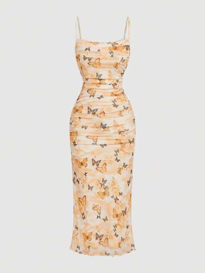 SHEIN MOD Vestido maxi de mujer con estampado de mariposas, romántico y lindo - Amarillo - Añade 4