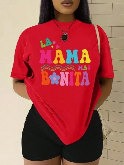 INAWLY Camiseta Casual De Mujer Con Impresión De Letras - Rojo - Añade 1