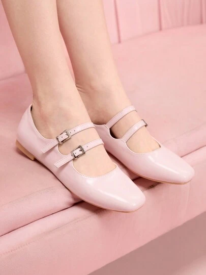 CUCCOO DOLLMOD Mocasines planos de moda casual con diseño de doble hebilla para mujer, zapatos de primavera - Rosa - Añade 4