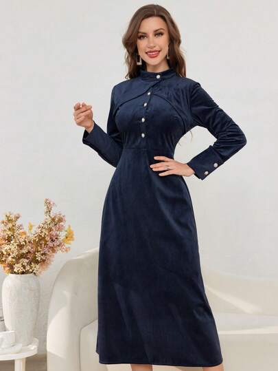 Modelyn Vestido de noche largo con cierre delantero, decoración y doble color en línea A que afina la cintura para mujeres - Azul - Añade 1