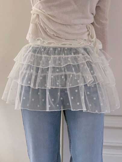 DAZY Falda de moda con estampado de estrellas de malla en capas para mujer - Blanco - Añade 2