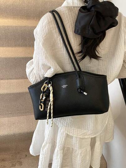 Bolso de hombro retro de gran capacidad y diseño sencillo de moda para mujer, año 2025 - Negro - Añade 1