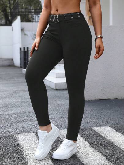 Pantalones casuales unicolor y sueltos para mujeres - Negro - Añade 5