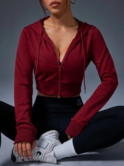 Sudaderas con cremallera de manga larga y unicolor para mujer - Rojo - Añade 6