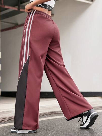 SHEIN Sports Pantalones casuales de senderismo para mujer con cintura elástica sencilla y parches de unicolor - Burdeos - Añade 1