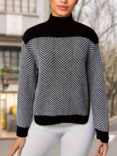 EMERY ROSE Sudadera De Cuello Alto De Espiga Para Mujer - Blanco y Negro - Añade 1