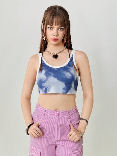 SHEINNeu Camiseta sin mangas de verano para mujer con diseño simple y flojo, con detalles en contraste y nudo en la Bottom - Azul - Añade 5