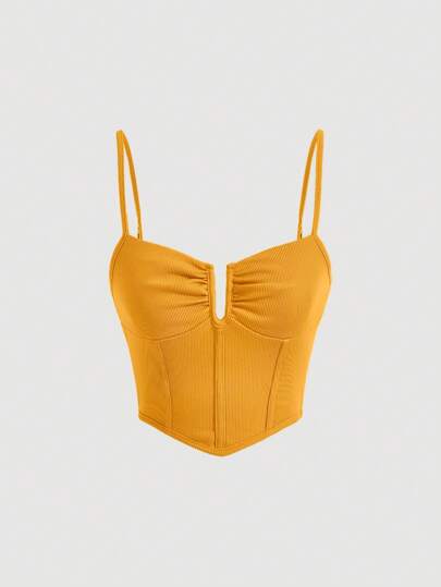 SHEIN MOD Top tipo corset con bajo de pañuelo de tela lisa - Amarillo - Añade 4