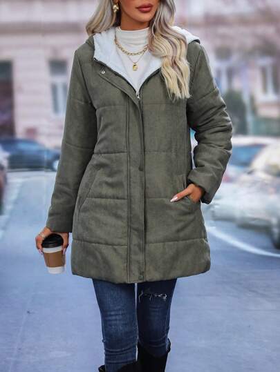SHEIN LUNE Abrigo acolchado con cremallera para mujer, ropa de invierno - Verde militar - Añade 4