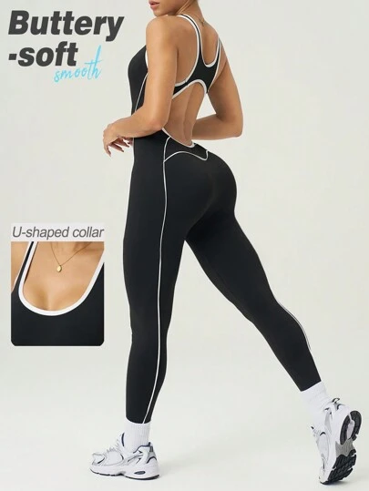 Gameset SHEIN Sport Mono sin espalda con cortes para mujer para uso diario, fitness y deportes - Negro - Añade 7