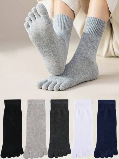 Calcetines de cinco dedos para mujer de color sólido, calcetines deportivos de dedo dividido para damas, calcetines de dedo estilo Harajuku para primavera y otoño - Multicolor - Añade 5