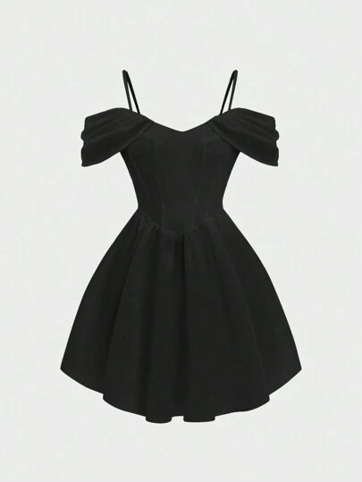 SHEIN Unity Vestido de mujer con hombros descubiertos y cintura ajustada - Negro - Añade 3