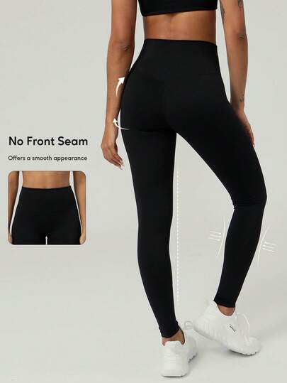 Leggings de cintura alta sin costuras con línea profunda en V en la parte trasera para correr, deportes al aire libre, pilates y yoga para mujeres - Negro - Añade 8