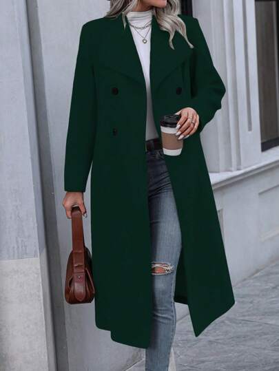 SHEIN Clasi Abrigo holgado de doble botonadura de unicolor para mujer, otoño/invierno - Verde Oscuro - Añade 4