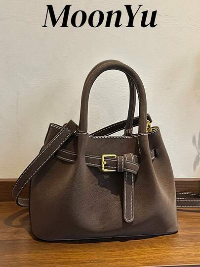 Bolso de cubo con cordón para mujer, de moda y elegante, adecuado para chicas, damas, estudiantes universitarias, color café - Café - Añade 2