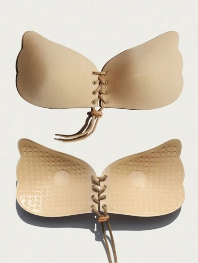 Tiras cruzadas transparentes para el hombro, pezoneras con forma de alas, 2 piezas de pegatinas para el pecho con cordón para mujeres, para colgar vestidos de novia recogidos y levantados, pegatinas de silicona antidescolgamiento para el pecho, ropa interior invisible sin tirantes, sujetador, sujetador adhesivo, pezoneras, lencería, cinta para los pechos, sujetador sin tirantes, sujetador push-up, lencería para mujeres, pezoneras, sujetador para mujeres, cinta para los pezones, sujetador sin espalda, adecuado para vestidos de gala, citas, bodas, viajes, vacaciones, fiestas, novias, primavera, color piel - Albaricoque - Añade 2