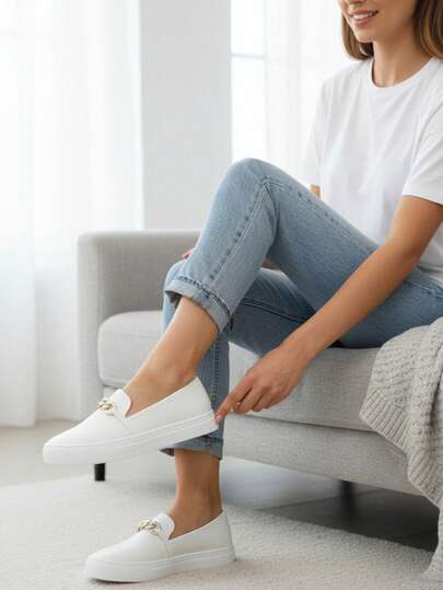 Women's Slip-On Casual Yacht Sneakers, Easy To Put On, Comfortable, With Rhinestone Bow.