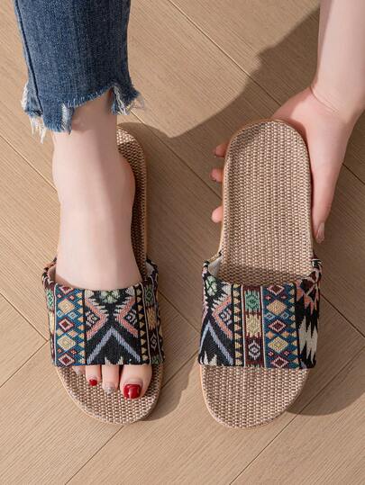 Sandalias de verano de estilo bohemio con punta abierta para mujer, pantuflas casuales unisex para el hogar, sandalias de playa, talla grande - Negro - Añade 8