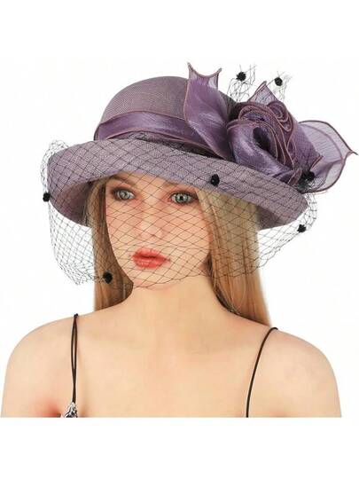 Sombrero de iglesia con flor para mujer con fascinador, sombreros para boda, fiesta del té, sombrero bombín, sombrero de cubo