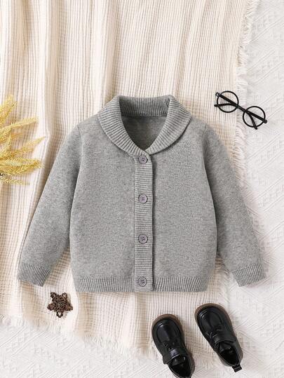 Parte superior casual minimalista de manga larga y botón delantero de unicolor para niño, uso diario - Gris Claro - Añade 1