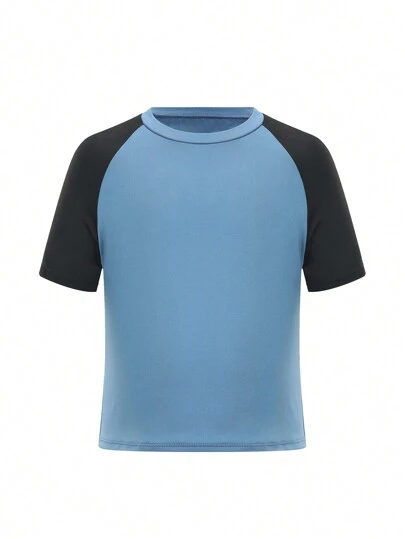 Camiseta Deportiva De Manga Corta Bicolor Para Jóvenes - Azul - Añade 1