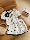 Set de 2 piezas de top de manga corta y shorts con estampado de palomitas de maíz lindo para niñas, verano