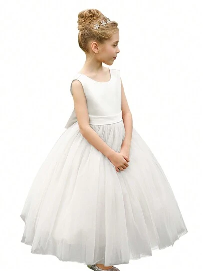 Vestido De Fiesta Para Niña Joven Con Detalles De Perlas, Un Lazo En La Espalda Y Falda De Encaje - Beis - Añade 1