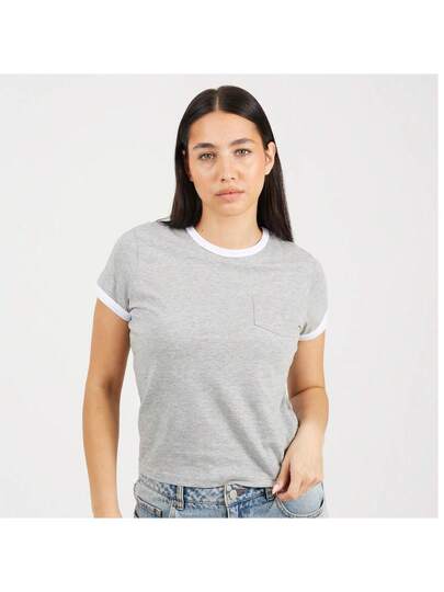 brave soul Camiseta con bolsillo y ribetes en contraste - Jaspeado gris - Añade 4
