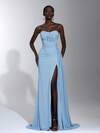 Elitara Elegante, romántico y de moda vestido largo con escote strapless de malla elástica azul con decoración de espina de pescado, abertura frontal, volantes, silueta acampanada, cola, sin tirantes, vestido de fiesta formal largo, vestido de invitada de boda, vestido maxi azul, vestido de dama de honor, vestido de noche formal