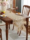Clientes habituales1 pieza Camino de mesa de satén jacquard, encaje bordado delicado y soluble en agua, diseño minimalista de alta gama, adecuado para todas las estaciones, se puede usar como camino de mesa de cocina/comedor, mantel individual, manta de picnic, regalo, bufanda para gabinete, decoración del hogar, reunión familiar, decoración navideña, aplicable para interiores/exteriores, villa, fiesta, boda