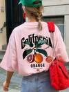 SHEIN Camiseta casual de mujer de manga corta con cuello redondo y estampado de letra de maracuyá