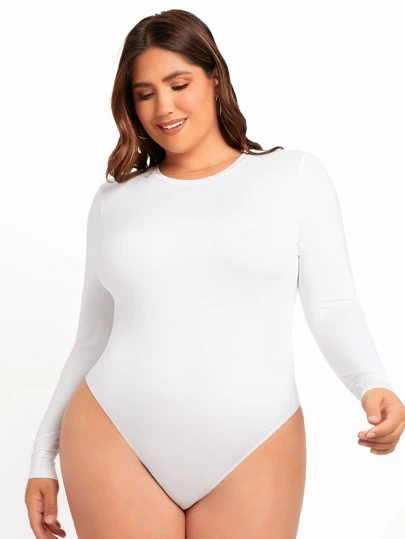 SHEIN Essnce Body ajustado de talla grande color liso, para invierno - Blanco - Añade 5