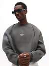 SUMWON Sudadera oversize con costuras, con detalle de logo frontal y puños acanalados para un estilo casual de ropa de calle, liso