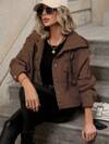 SHEIN Frenchy Cazadora mezclilla con bolsillo con solapa de hombros caídos con cordón con capucha