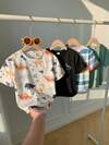 Set de 2 piezas: Parte superior de manga corta con estampado de dibujos animados + Pantalones cargo casuales para niños pequeños