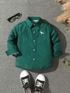 1 pieza Camisa de manga larga para niños pequeños, camisa con cuello con patrón de bordado de dinosaurio, versátil y casual, adecuada para uso diario, viajes, escuela, fiestas, vacaciones, nuevo lanzamiento
