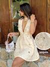 Serisse Vestido mini sexy de moda con cuello en V profundo, diseño de lentejuelas y frente con lazo sin mangas para mujer