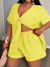 Linhara CURVE Bermudas de talla grande para mujer con bolsillo y lazo en la cintura, de unicolor