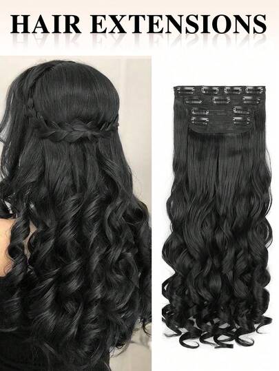 nimoki Extensiones De Cabello Rizado Y Largo Con Clips De 20 Pulgadas Y 4 Piezas, Extensiones De Cabello Sintético Para Mujer (negro) - Negro - Añade 2