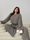 GlowEve CURVE Conjunto de 2 piezas de estilo preppy a rayas azules y blancas para mujer de talla grande