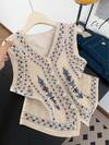 GlowEve Camiseta sin mangas casual de mujer con cuello en V y estampado floral de un solo abotonado
