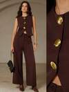 Aveloria Rosie Conjunto de top de chaleco elegante para mujer con decoración de hebilla de metal de concha y pantalones de pierna recta, conjunto de atuendo de fiesta de estilo europeo de lujo