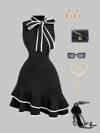 Vestido mini para mujer con cuello redondo, sin mangas, decoración de un solo pecho, estilo colorblock y rayas, de moda diaria casual tipo Ins, para primavera/verano 2026, atuendo para vacaciones de primavera, Día de San Valentín