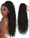Clip de cola de caballo rizada marrón de 22 pulgadas de largo con peluca de cola de caballo sintética con cordón, onda de agua, peluca de cola de caballo afro para mujer