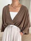 DAZY Blusa holgada de negocios casual con cuello en V profundo y mangas tipo murciélago para mujeres, ropa de mujer de manga larga para otoño