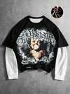 PAVTROS Camiseta de manga larga con gráfico de cámara joven, color de contraste, empalme, estilo callejero, holgada, para hombres, pareja, gráfico, "Amo a mi novio", amigos, a juego, novio, 2 en 1