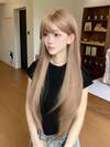 Peluca recta de 24 pulgadas de color dorado con flequillo, adecuada para uso diario de mujeres, peluca sintética resistente al calor