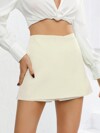 Falda pantalón negra de unicolor minimalista para uso casual, oficina y viajes, con hebilla y cinturón, para verano