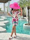 Travachic KIDS Vestido casual ajustado con hombro asimétrico fruncido y estampado de teñido anudado para niña preadolescente